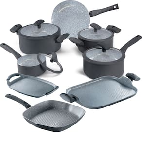 - Pode ir em lava-louças; - Pode ir em fogões por indução; - Material (Panelas, frigideira e caçarolas): Alumínio, Silicone, Vidro e Baquelite. Composição:Quantidade 7 Peças; 1- Caçarola Ø20 x 9 cm – espessura 3mm - 2.5L; 1- Panela Ø18 x 9 cm - espessura 3mm - 1.75L; 1- Panela Ø20 x 9 cm - espessura 3mm - 2.5L; 1- Frigideira Ø20 x 5cm - espessura 3mm - 1.2L;1- Frigideira Quadrada Ø29 x 4cm - espessura 3mm - 2L; 1- Grill Ø30 x 1cm - espessura 3mm - 0,8L; 1- Grill Duplo Ø38 x 2cm - espessura 3mm - 1L; Especificações: Marca: Hércules;Modelo: Soft Touch; Garantia: 3 meses.
