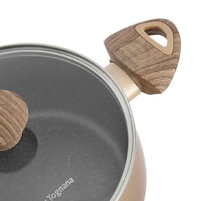 Fabricado em alumínio forjado de alta resistência, o Jogo de Panelas Eco Bright garante um cozimento uniforme e muito mais eficaz no preparo dos seus pratos favoritos. O design moderno e formato arredondado trazem elegância para sua cozinha. Os detalhes em baquelite com estampa amadeirada nos cabos e poméis, unem segurança térmica com o soft touch de visual sofisticado que valoriza qualquer cozinha.