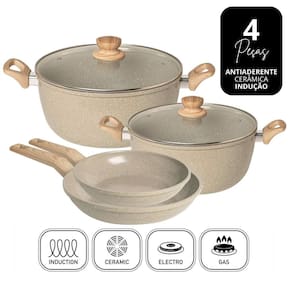 Jogo Panelas Indução 4pç Fundo Triplo Cerâmica Antiaderente
