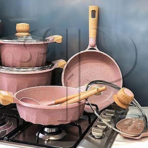 Os conjuntos de Panelas, Caçarolas e Frigideiras da COOKLOVER - MGC são projetadas com a mais moderna tecnologia, para transformar o cozinhar do dia-a-dia em uma experiência. O revestimento antiaderente em granito cerâmico stone é um novo revestimento baseado na cor e textura do granito real, com vantagens que incluem alta resistência ao desgaste e boa impermeabilidade. O revestimento de granito antiaderente de alta performance facilita a cozedura e a limpeza, além de não agredir o meio ambiente.
