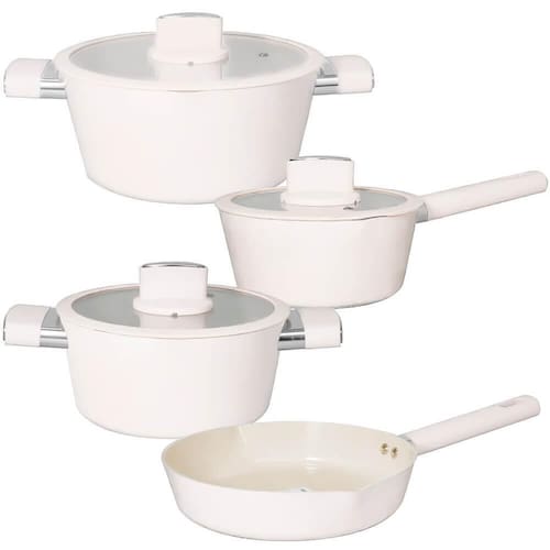 O Jogo de Panelas Casambiente Chicago Branca une estilo sofisticado, tecnologia de ponta e segurança alimentar em um conjunto, composto por duas caçarolas, uma panela de cabo e uma frigideira, todas as peças contam com revestimento cerâmico na cor bege de alta qualidade, livre de metais pesados, que proporciona um cozimento mais saudável, sem liberar toxinas nos alimentos.