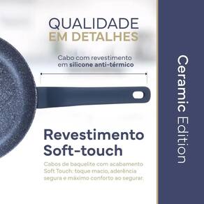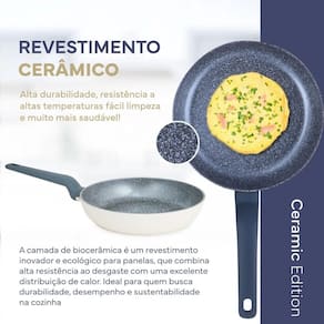 O kit completo é composto por duas caçarolas com tampa 24 cm e 20 cm , uma panela com tampa 18 cm , duas frigideiras 24 cm e 20 cm e três utensílios em silicone Espátula, colher e pegador de massas Que ajudam a preservar o revestimento das panelas. Os cabos e alças são revestidos com material macio ao toque e resistentes ao calor, proporcionando segurança e conforto no manuseio.