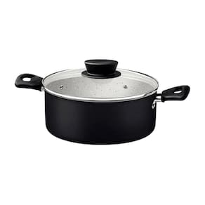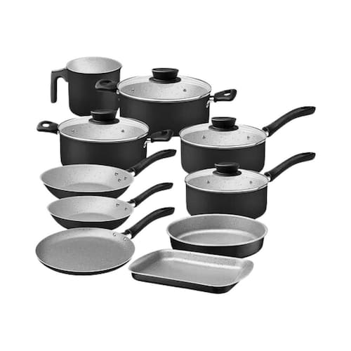Jogo de Panelas Linz 10Pçs Preto Antiaderente Tramontina Transforme sua cozinha com o jogo de panelas Tramontina Linz em alumínio com revestimento interno e externo em antiaderente Starflon Max preto 10 peças. Ideal para uso no dia a dia, este jogo tem panelas feitas em alumínio de alta qualidade e garantem um cozimento rápido e uniforme, sem que grudem em sua superfície, pois contam com revestimento interno e externo em antiaderente Starflon Max. As peças têm tampas de vidro temperado com bordas de aço inox que permitem visibilidade durante o preparo. Seus cabos e alças são em baquelite e nylon, ambos materiais antitérmicos que garantem maior segurança e conforto no manuseio. Compatíveis com fogões a gás, elétricos e vitrocerâmicos, essas panelas podem ser lavadas na máquina de lavar louças, tornando seu dia a dia mais prático e eficiente CONTEÚDO: 1-frigideira 16cm -0,4L 1-frigideira 20cm -0,8L 1-panela 14cm -0,8L 1-panela 16cm -1,4L 1-caçarola 18cm -2L 1-caçarola 20cm -2,8L 1-fervedor 12cm -1,1L 1-panquequeira 22cm -0,6L 1-assadeira rasa 28cm -2L 1-assadeira Redonda 22cm -1,7L Marca: Não Informado