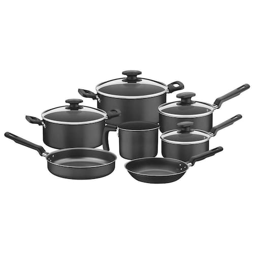 Com estrutura de alumínio que dissipa melhor o calor, cozinhando o alimento por igual, o Jogo de Panelas Tramontina Loreto em Alumínio com Revestimento Interno e Externo Antiaderente Starflon T1 com Cabos e Alças Grafite 7 Peças é indispensável em sua cozinha! Composto por uma frigideira reta (22 cm), duas caçarolas (20 cm e 22 cm), duas panelas (16 cm e 18 cm) e um fervedor (12 cm), todas desenvolvidas em alumínio com espessura que proporciona um cozimento rápido e uniforme dos alimentos, e contam com revestimento interno e externo antiaderente Starflon T1, que possui maior poder de antiaderência, durabilidade e facilidade para limpar, além de possuir maior resistência à abrasão, prolongando sua vida útil em 5.000 ciclos. As panelas e caçarolas acompanham uma linda tampa de vidro temperado com bordas em aço inox e os cabos e alças em baquelite antitérmico garantem segurança durante o manuseio e evitam queimaduras, pois não esquentam. Um jogo prático, fácil de limpar e que pode ir à máquina de lavar louças. O jogo de panelas ideal para sua cozinha!