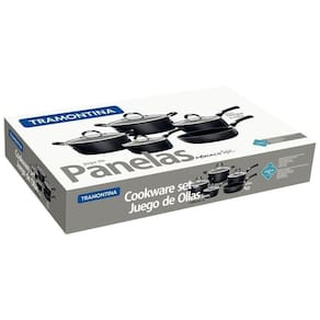 O Jogo de Panelas Tramontina Mônaco em Alumínio com Revestimento Interno Antiaderente Starflon T3 e Cabos em Aço Inox e Silicone Preto 5 Peças da linha Mônaco irá proporcionar para a sua cozinha um conjunto completo para realizar os mais diferentes tipos de preparos, tornando aquela comida caseira ainda mais saborosa. Produzidas em alumínio com revestimento interno e externo de antiaderente Starflon T3 com maior poder de antiaderência, maior resistência a abrasão, maior durabilidade, maior facilidade na limpeza e livre de PFOA, possibilita alta durabilidade e qualidade dos preparos. Com cabos, alças e pegadores de aço inox com proteção de silicone, para tornar o seu manuseio ainda mais confortável e seguro, pois não aquece. A tampa é de vidro temperado com saída de vapor e borda de aço inox. As suas características e design diferenciado farão da sua cozinha o ambiente mais prazeroso da casa.OrientaçõesCorpo de alumínio com espessura de 3,0 mm que proporciona cozimento rápido e uniforme.