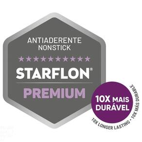 Revestimento interno e externo de antiaderente Starflon Premium que não gruda, é fácil de limpar, mais durável e não é prejudicial a saúde.