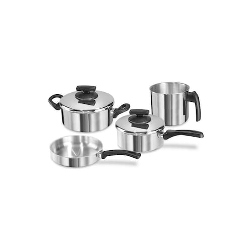 Mais nova exclusividade das panelas Remaza um verdadeiro aliado tanto no preparo das refeições do dia a dia quanto nas servidas em ocasiões especiais. O conjunto formado por 04 peças e 03 utensílios diminui seu tempo à frente do fogão, além de deixar os alimentos com um cozimento uniforme. Por ser serem desenvolvidas com cabos e alças de baquelite térmico, você pode pegar as panelas com toda a segurança e a garantia de não esquentar, além de poder levar qualquer um dos itens tanto à geladeira como à máquina lava-louças. As tampas feitas com vidro temperado permitem o acompanhar o cozimento das receitas sem precisar abri-las durante o processo.