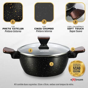 Transforme sua cozinha com o Kit de Panelas Sampa Black Vulkano Extream, desenvolvido para quem busca qualidade, durabilidade e inovação. Com um design moderno na cor Black Vulkano, este conjunto de 11 peças oferece tudo o que você precisa para um cozimento eficiente e prático.