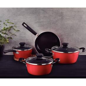 A panela e as caçarolas vem com tampas de vidro temperado com saídas de vapor e bordas de aço inox e todos os itens do jogo tem acabamento externo em poliéster e cabos, alças e pegadores baquelite antitérmico, material que reduz a propagação de calor e proporciona um manuseio muito mais seguro e confortável. Além de todas essas vantagens, o jogo pode ir à máquina de lavar louças, facilitando suas tarefas na cozinha