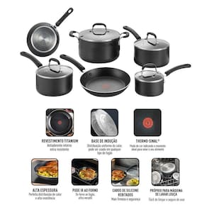 Jogo de Panelas Rochedo Professional Revestimento Ceramico Indução Tefal 6 Peças Preto Descrição: Descubra o Jogo de Panelas Tefal Professional 6 Peças Preto e eleve sua experiência culinária a um nível Desenvolvido com a tecnologia exclusiva Titanium Antiaderente, este conjunto oferece resistência superior e durabilidade incomparável para uso intensivo. Com base espessa que garante distribuição uniforme de calor em todos os tipos de fogão inclusive indução , e a revolucionária tecnologia Thermo-Signal que indica visualmente o momento ideal para selar os alimentos, preservando suculência e sabor. Os cabos de silicone rebitados proporcionam segurança e firmeza durante o manuseio, enquanto a versatilidade de poder ser utilizado tanto no fogão quanto no forno amplia suas possibilidades culinárias. Perfeito para quem busca praticidade e alto desempenho, este jogo combina funcionalidade avançada com um design sofisticado na cor preta, sendo ainda lavável na máquina de louças para máxima conveniência no dia a dia. Características: -revestimento Titanium Antiaderente: máxima resistência e durabilidade; -base compatível com todos os tipos de fogão inclusive indução ; -tecnologia Thermo-Signal: indicador visual do ponto ideal de cozimento; -cabos de silicone rebitados para segurança e conforto; -resistente ao forno e lavável em máquina de louças; -design na cor preta; Composição: Quantidade 6 Peças; 1- Caçarola 24 cm - 4.3l; 1- Panela 20 cm - 3L; 1- Panela 18 cm - 2.2l; 1- Panela 14 cm - 1,5L; 1- Frigideira 26cm - 1.6l; 1- Frigideira 20cm - 0.9l; Especificações: Marca: Rochedo; Modelo: Platinum; : 3 meses. ---- Aqui na Casa & Tendência você encontra os melhores utensílios domésticos e tudo que você precisa para sua cozinha ---- Marca: Não Informado