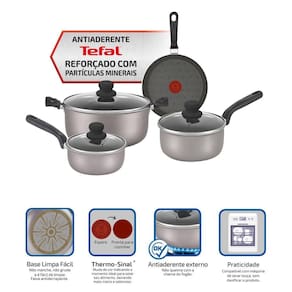 Garanta a durabilidade que suas panelas e frigideiras precisam com o novo Jogo de Panelas Rochedo Talent Imusa 4 Peças, feito com a mais alta tecnologia e qualidade do Antiaderente Tefal, marca referência em panelas e utensílios de cozinha no mundo. Conheça Jogo de Panelas Rochedo Talent Imusa 4 Peças com revestimento mais durável do Brasil! Com os itens ideais para sua cozinha, o Jogo de Panelas Rochedo Talent Imusa 4 Peças é extremamente resistente e durável além de contar com design moderno e elegante na cor cinza que combina com sua cozinha. Composto por peças na medida e que ajudam na hora do preparo de suas receitas, o conjunto possui duas panelas de 16 e 18cm, uma caçarola de 24cm e uma frigideira francesa de 24cm. Confira todos os diferenciais do Conjunto Rochedo Talent Imusa 4 peças, que farão toda a diferença na hora de cozinhar seus pratos preferidos: - Antiaderente Tefal: reforçado com partículas minerais do antiaderente Tefal, marca mundialmente conhecida pela qualidade e excelência em artigos de cozinha. - Revestimento interno e externo: não queima com a chama do fogão e não permite que o alimente grude, facilitando a limpeza. - Thermo-Sinal: tecnologia patenteada que muda de cor quando aquecida, indicando a hora certa de colocar o alimento na frigideira para selar, deixando mais macio e saboroso. - Base Limpa Fácil: Não mancha, não gruda e é fácil de limpar. Além de contar com a qualidade da marca Rochedo, presente no Brasil há mais de 100 anos, as panelas e frigideiras do Conjunto Rochedo Talent Imusa 4 peças são livres de substâncias tóxicas (PFOA), garantindo a segurança no uso dos produtos. Podem ser utilizadas em fogão a gás, vitrocerâmico e elétrico, podendo também ser levadas à máquina de lavar louças.