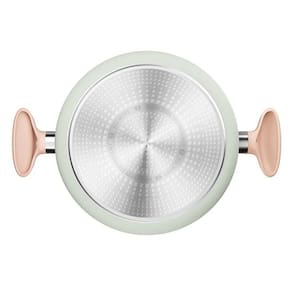 Seus diferenciais incluem: Revestimento Titanium: Garante uma experiência antiaderente extra resistente. Base de indução: Compatível com todas as fontes de calor. Alta espessura de 3,2mm: Perfeita distribuição de calor e alta resistência, produto robusto. Cabo Soft Touch: Para um manuseio mais confortável. Thermo sinal: Muda de cor indicando o momento ideal para selar o alimento, deixando-o mais macio e saboroso. Antiaderente externo: Fácil de limpar e não queima com a chama do fogão. Design moderno: Feito na cor verde clara para trazer elegância para sua cozinha.