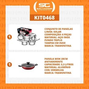 1 - jogo de panelas com fundo triplo corpo e tampa em inox 6 pçs - solar - tramontina