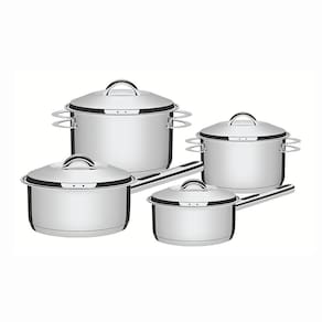 Eleve a qualidade do seu preparo diário com o Jogo de Panelas Tramontina em aço inoxidável. Uma escolha mais saudável para sua família, pois o inox não libera resíduos nos alimentos. Desfrute da facilidade de uso em todos os tipos de fogão: gás, elétrico, vitrocerâmico e indução. As tampas com saída de vapor e encaixe perfeito otimizam o cozimento.