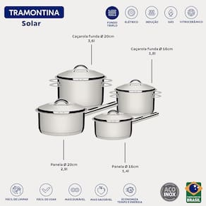 Jogo de Panelas Solar em Aço Inox Com Fundo Triplo Indução 4 Peças - Tramontina 65510760