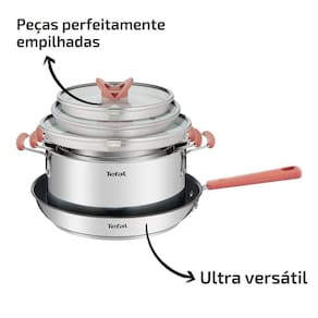 A linha Tefal OptiSpace facilita o armazenamento e otimiza espaço na sua cozinha, além de contar com toda a elegância e resistência do Inox de qualidade premium e oferecer 10 anos de garantia*!