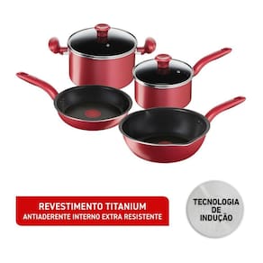 Descrição: Jogo de Panelas Tefal So Chef 4 Peças - Experiência culinária superior com tecnologia premium! Este conjunto em alumínio possui revestimento antiaderente Titanium, duas vezes mais durável, e fundo triplo compatível com indução para distribuição uniforme de calor. A exclusiva tecnologia Thermo-Sinal® indica visualmente o momento ideal para selar os alimentos, preservando sabor e nutrientes. Perfeito para quem busca durabilidade, praticidade e resultados profissionais.