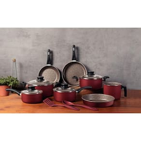 Corpo de alumínio com espessura que proporciona cozimento rápido e uniforme. Revestimento interno e externo de antiaderente Starflon Max que não gruda, é fácil de limpar, mais durável e não é prejudicial à saúde, pois é livre de PFOA. Tampas de vidro temperado, com saída de vapor e bordas de aço inox. Cabos, alças de baquelite antitérmico e pegadores de nylon que oferecem segurança durante o manuseio. Utensílios de nylon que permitem uso em temperaturas de até 180 °C e cabos com furo passante possibilitando que seja pendurado na sua cozinha. Podem ir à máquina de lavar louças facilitando seu dia a dia.