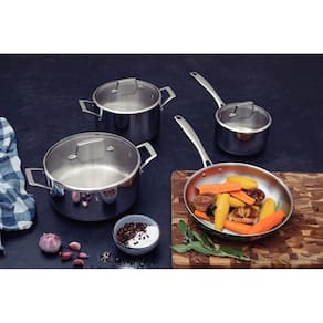 • Economiza tempo e energia: o segredo está no corpo triplo (aço inox + alumínio + aço inox), que distribui o calor uniformemente, proporcionando um cozimento mais rápido. Por isso, você pode manter o fogo baixo durante todo o preparo e, assim, poupar energia. Além disso, a caçarola toda em aço inox pode ir ao forno para gratinar ou finalizar pratos, na temperatura máxima de 260°C.