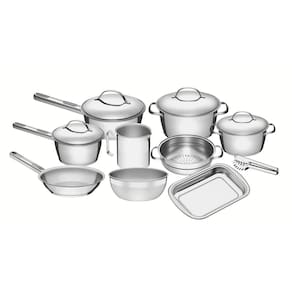 Sua cozinha vai ganhar ajudantes diferenciados com o Jogo de Panelas Tramontina Allegra em Aço Inox com Fundo Triplo e Tampas de Inox 10 Peças da Linha Allegra. Dez peças perfeitas para auxiliar você nas tarefas do dia a dia, produzidas totalmente em aço inox, elas mantêm os alimentos saudáveis ??já que o material não solta resíduos. Trazem ainda a tecnologia de fundo triplo (aço inox + alumínio + aço inox), que distribui o calor uniformemente, proporcionando um cozimento mais rápido e uniforme, economizando energia e deixando os alimentos aquecidos por mais tempo. Altamente duráveis ??e higiênicas, são fáceis de limpar devido ao desenho sem cantos. Podem ainda ser lavadas diariamente na máquina de lavar louças. São versáteis, podendo ir ao forno para gratinar ou finalizar pratos na temperatura máxima de 260 ° C, além de ser usado nos fogões à gás, elétrico, vitrocerâmico e indução. Acompanham tampas com saída de vapor e encaixe perfeito. São ainda peças estilosas com um moderno acabamento em alto brilho, tornando sua cozinha mais charmosa!
