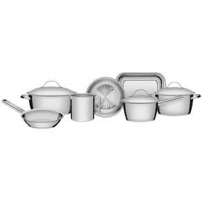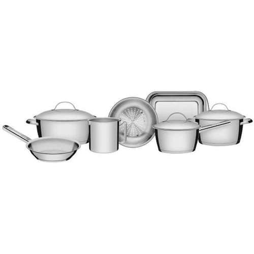 Sua cozinha ficará completa com o Jogo de Panelas Tramontina Allegra em Aço Inox com Fundo Triplo 7 Peças. São sete peças perfeitas para você preparar diferentes tipos de receitas, das mais simples às mais complexas. Elas apresentam fundo triplo (aço inox alumínio aço inox), tecnologia que distribui o calor uniformemente, cozinhando os alimentos mais rápido e economizando energia. São utensílios de muito bom gosto e totalmente produzidos em aço inox. Eles embelezam sua cozinha dando um toque de elegância e estilo. O design moderno também traz tampa com saída de vapor e encaixe perfeito, facilitando o uso. Ideal para as tarefas do dia-a-dia ou para aquela reunião com pessoas especiais. As peças ainda são muito versáteis, podendo ir ao forno e em diferentes tipos de fogões. O fervedor não é indicado para o fogão à indução.