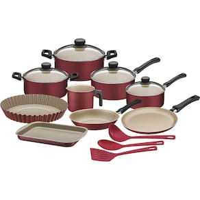 A Linha Caribe é produzida em alumínio, com revestimento interno antiaderente e é indispensável dentro de sua cozinha no dia a dia As peças possuem a espessura ideal para um cozimento mais ágil e uniforme dos alimentos, deixando a sua refeição ainda mais deliciosa. As tampas são feitas de vidro temperado e permitem a visualização dos alimentos durante o cozimento. O revestimento interno antiaderente facilita a higienização diária do item, além de facilitar o processo de cozimento impedindo que os alimentos grudem - sempre lembrando que é necessário utilizar azeite ou óleo para realizar os cozimentos. Os cabos e alças são feitos de baquelite antitérmico e os pegadores em nylon, deixando o manuseio mais confortável e seguro, sendo materiais antitérmicos. Características: Marca: Tramontina Código do Fabricante: 20297703 Linha: Caribe Cor: vermelho Material: Alumínio Material dos Cabos/Alças: Baquelite antitérmico Material do Pegador: Nylon Antiaderente: Sim Fogões Compatíveis: Gás, elétrico e vitrocerâmico Conteúdo: 1 Assadeira Rasa 22 cm 1.4L Brasil, 1 Caçarola 18cm 2L, 1 Caçarola 20cm 2.8L Caribe, 1 Colher para Servir Utilità, 1 Concha Utilità, 1 Espátula Utilità, 1 Fervedor 12 cm 1.1L Turim, 1 Forma para Torta e Bolo 26 cm 1.8L Brasil, 1 Frigideira 20 cm 0.8L Caribe, 1 Panela 16cm 1.4L Caribe, 1 Panela 18cm 2L Caribe, 1 Panquequeira 22 cm 0.6L Napoli Compatível com Lava-louças: Sim Material das Tampas: Vidro temperado