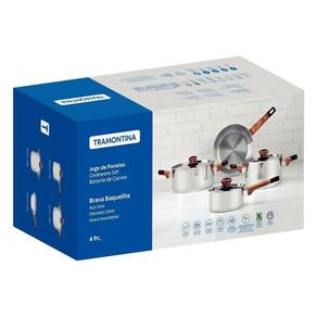 Jogo De Panelas Tramontina Brava Baquelite Em Aço Inox 4 Peças