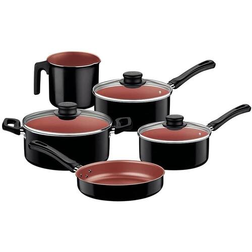 INFORMAÇÕES GERAIS DO JOGO DE PANELAS TRAMONTINA CARIBE COM ANTIADERENTE STARFLON MAX 05 PEÇAS PRETO - Corpo de alumínio com espessura que proporciona cozimento rápido e uniforme. - Revestimento interno de antiaderente Starflon Max que não gruda, é fácil de limpar, mais durável e não é prejudicial à saúde, pois é livre de PFOA. - Revestimento externo de poliéster. - Tampas de vidro temperado com borda de aço inox. - Cabos e alças de baquelite antitérmico e pegadores de nylon que oferecem segurança durante o manuseio.