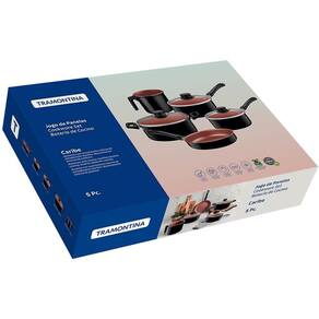 DESCRIÇÃO DO JOGO DE PANELAS TRAMONTINA CARIBE COM ANTIADERENTE STARFLON MAX 05 PEÇAS PRETO - Complete sua cozinha com o jogo de panelas Tramontina Caribe com revestimento interno em antiaderente Starflon Max e externo de poliéster preto 05 peças. - Ideal para preparar suas refeições diárias, ele tem peças produzidas em alumínio com espessura que proporciona o cozimento rápido e uniforme dos alimentos. - Externamente elas são revestidas em poliéster e internamente em antiaderente Starflon Max, material que evita que os alimentos grudem em sua superfície. - As panelas e a caçarola vêm com tampas de vidro temperado com borda de aço inox que facilitam a visualização dos alimentos e facilitam o preparo. - Os cabos, alças e pegadores são em materiais antitérmicos e oferecem maior segurança durante o manuseio!