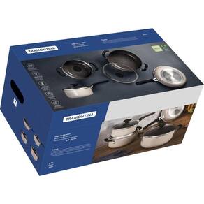 Descubra o equilíbrio perfeito entre eficiência e design com o Jogo de Panelas Tramontina Tunis em Alumínio com Revestimento Cerâmico e Externo Siliconado. Projetado para oferecer o máximo de conveniência e segurança na cozinha, este conjunto é a escolha ideal para quem busca otimizar o preparo de suas refeições sem abrir mão da estética. O revestimento interno cerâmico antiaderente assegura um cozimento uniforme e facilita a limpeza, enquanto o revestimento externo siliconado adiciona um toque de cor e proteção extra. Os cabos metálicos com proteção em silicone minimizam a propagação de calor, garantindo uma empunhadura mais segura e confortável. Este versátil conjunto é adequado para uso em fogões a gás, elétrico, indução e vitrocerâmico. A tecnologia do fundo de indução permite um cozimento mais rápido e seguro, elevando a experiência culinária. Para sua comodidade, todas as peças podem ser lavadas na máquina de lavar louças, simplificando ainda mais a sua rotina. Com o Jogo de Panelas Tramontina Tunis, você estará equipado para criar pratos deliciosos com facilidade, fazendo de cada refeição um momento especial. Características: Marca: Tramontina Código do Fabricante: 28799410 Linha: Tunis Cor: Rosa Trufado Material: Alumínio Material da Alça/Pegador: Silicone Revestimento Cerâmico: Sim Fogões Compatíveis: Gás, elétrico, vitrocerâmico e indução Conteúdo do Jogo: 1 Caçarola 20cm 3L, 1 Caçarola 24cm 5L, 1 Frigideira funda 24cm 2.9L e 1 Panela 18cm 2.1L Compatível com Lava-louças: Sim Material das Tampas: Vidro temperado Saída de Vapor: Sim