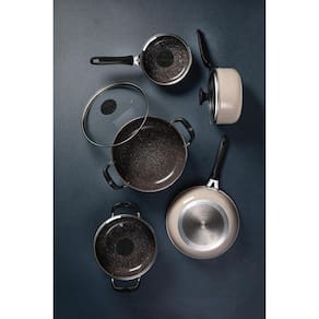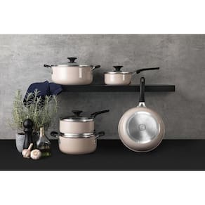 Descubra o equilíbrio perfeito entre eficiência e design com o Jogo de Panelas Tramontina Tunis em Alumínio com Revestimento Cerâmico e Externo Siliconado. Projetado para oferecer o máximo de conveniência e segurança na cozinha, este conjunto é a escolha ideal para quem busca otimizar o preparo de suas refeições sem abrir mão da estética. O revestimento interno cerâmico antiaderente assegura um cozimento uniforme e facilita a limpeza, enquanto o revestimento externo siliconado adiciona um toque de cor e proteção extra. Os cabos metálicos com proteção em silicone minimizam a propagação de calor, garantindo uma empunhadura mais segura e confortável. Este versátil conjunto é adequado para uso em fogões a gás, elétrico, indução e vitrocerâmico. A tecnologia do fundo de indução permite um cozimento mais rápido e seguro, elevando a experiência culinária. Para sua comodidade, todas as peças podem ser lavadas na máquina de lavar louças, simplificando ainda mais a sua rotina. Com o Jogo de Panelas Tramontina Tunis, você estará equipado para criar pratos deliciosos com facilidade, fazendo de cada refeição um momento especial. Características: Marca: Tramontina Código do Fabricante: 28799411 Linha: Tunis Cor: Rosa Trufado Material: Alumínio Material da Alça/Pegador: Silicone Revestimento Cerâmico: Sim Fogões Compatíveis: Gás, elétrico, vitrocerâmico e indução Conteúdo do Jogo: 1 Caçarola 20cm 3L, 1 Caçarola 24cm 5L, 1 Frigideira funda 24cm 2.9L, 1 Panela 18cm 2.1L e Panela 16cm 1.35L Compatível com Lava-louças: Sim Material das Tampas: Vidro temperado Saída de Vapor: Sim