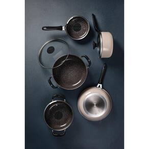 Descubra o equilíbrio perfeito entre eficiência e design com o Jogo de Panelas Tramontina Tunis em Alumínio com Revestimento Cerâmico e Externo Siliconado. Projetado para oferecer o máximo de conveniência e segurança na cozinha, este conjunto é a escolha ideal para quem busca otimizar o preparo de suas refeições sem abrir mão da estética. O revestimento interno cerâmico antiaderente assegura um cozimento uniforme e facilita a limpeza, enquanto o revestimento externo siliconado adiciona um toque de cor e proteção extra. Os cabos metálicos com proteção em silicone minimizam a propagação de calor, garantindo uma empunhadura mais segura e confortável. Este versátil conjunto é adequado para uso em fogões a gás, elétrico, indução e vitrocerâmico. A tecnologia do fundo de indução permite um cozimento mais rápido e seguro, elevando a experiência culinária. Para sua comodidade, todas as peças podem ser lavadas na máquina de lavar louças, simplificando ainda mais a sua rotina. Com o Jogo de Panelas Tramontina Tunis, você estará equipado para criar pratos deliciosos com facilidade, fazendo de cada refeição um momento especial. Características: Marca: Tramontina Código do Fabricante: 28799411 Linha: Tunis Cor: Rosa Trufado Material: Alumínio Material da Alça/Pegador: Silicone Revestimento Cerâmico: Sim Fogões Compatíveis: Gás, elétrico, vitrocerâmico e indução Conteúdo do Jogo: 1 Caçarola 20cm 3L, 1 Caçarola 24cm 5L, 1 Frigideira funda 24cm 2.9L, 1 Panela 18cm 2.1L e Panela 16cm 1.35L Compatível com Lava-louças: Sim Material das Tampas: Vidro temperado Saída de Vapor: Sim Ean: 7891112334342
