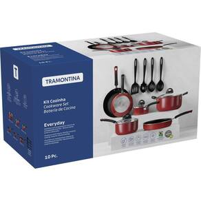 O kit completo para a sua cozinha se encontra aqui, com a Linha Everyday da Tramontina São panelas e utensílios que vão facilitar muito mais a sua arte de cozinhar, sempre encantando os paladares, seja no dia a dia, seja em eventos com convidados especiais. Você terá a sua cozinha completa e cheia de itens de alta qualidade para deixá-la ainda mais elegante. As panelas são antiaderentes para deixar o cozimento mais simples e a higienização mais prática, além disso, contam com tampas de vidro para permitir a visualização dos alimentos cozinhados e saída de vapor que auxilia na circulação necessária durante o cozimento. Os utensílios desta linha são produzidos de nylon, assim, você pode servir as refeições nas próprias panelas sem danificá-las. Características: Marca: Tramontina Código do Fabricante: 27899205 Linha: Everyday Cor: Vermelho Material: Alumínio Material da Alça/Pegador: Baquelite Material dos Utensílios: Nylon Antiaderente: Sim Fogões Compatíveis: Gás, elétrico e vitrocerâmico Conteúdo: 1 Caçarola 24cm 4.7L, 2 Colheres para Servir, 1 Espátula, 1 Frigideira Reta 24cm 2L, 1 Frigideira 20cm 0.8L, 1 Frigideira 25cm 1.2L, 1 Panela 14cm 0.95L, 1 Panela 18cm 1.9L e 1 Pegador de Massa Compatível com Lava-louças: Não Material das Tampas: Vidro temperado Saída de Vapor: Sim