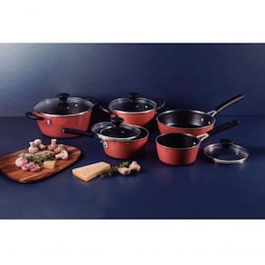 Para uma cozinha completa e de alta qualidade, o jogo de panelas Tramontina Glenz é essencial. Com 5 peças em alumínio, revestimento interno em Starflon Crystals e externo esmaltado cobre rose, este conjunto é ideal para acompanhá-lo no dia a dia. As peças possuem corpo de alumínio com espessura de 2,5 milímetros, garantindo um cozimento rápido e uniforme. O revestimento interno antiaderente Starflon Crystals é fácil de limpar e proporciona um brilho exclusivo. Externamente, as peças são esmaltadas e contam com cabos, alças e pegadores de baquelite antitérmico, que não aquecem e oferecem maior segurança durante o manuseio. Além disso, as panelas e caçarolas possuem tampas de vidro temperado com saída de vapor e bordas de aço inox, sendo compatíveis com máquina de lavar louças, o que facilita ainda mais o seu dia a dia na cozinha.