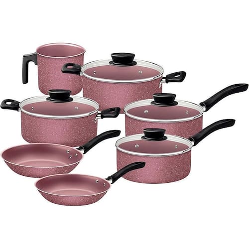 Corpo de alumínio com espessura que proporciona cozimento rápido e uniforme. Revestimento interno e externo de antiaderente Starflon Max que não gruda, é fácil de limpar, mais durável e não é prejudicial à saúde, pois é livre de PFOA.Tampas de vidro temperado com bordas de aço inox.Cabos, alças de baquelite antitérmico e pegadores de nylon que oferecem segurança durante o manuseio. Podem ir à máquina de lavar louças facilitando seu dia a dia.Pode ser utilizada nos fogões: gás, elétrico e vitrocerâmico - resistência elétrica. Marca: Não Informado
