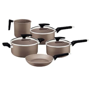 Jogo De Panelas Tramontina Milazzo 5 Peças Em Alumínio Antiaderente Starflon Max Amêndoa