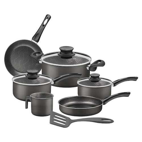 Jogo De Panelas Tramontina Paris Aluminio Revestimento Antiaderente Starflon Max Chumbo 07 P Corpo de alumínio com espessura que proporciona cozimento rápido e uniforme. Revestimento interno e externo de antiaderente Starflon Max que não gruda, é fácil de limpar, mais durável e não é prejudicial à saúde, pois é livre de PFOA.Tampas de vidro temperado, com saída de vapor e bordas de aço inox. Cabos, alças de baquelite antitérmico e pegadores de nylon que oferecem segurança durante o manuseio. Utensílio de nylon que permite uso em temperaturas de até 180 C e cabo com furo passante possibilitando que seja pendurado na sua cozinha. Podem ir à máquina de lavar louças facilitando seu dia a dia. NA