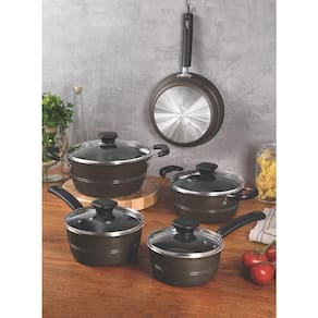 O Jogo de Panelas Tramontina Sicília em Alumínio com Revestimento Interno e Externo Antiaderente Starflon Excellent Avelã 5 Peças vai garantir uma cozinha equipada com utensílios de alta qualidade e eficiência! Suas peças são produzida em alumínio com revestimento interno e externo de antiaderente Starflon Excellent, características que proporcionam o cozimento uniforme dos alimentos, evita que eles grudem em sua superfície e as torna mais duráveis. Suas panelas e caçarolas vem com tampa de vidro temperado com saída de vapor e borda de aço inox e seus cabos, alças e pegadores são em material antitérmico e garantem um manuseio muito mais confortável e seguro. Elas ainda são fáceis de limpar e podem ir à máquina de lavar louças, otimizando sua rotina na cozinha!