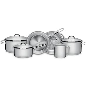 - O Jogo de Panelas Tramontina Solar em Aço Inox com Fundo Triplo e Tampas de Inox 6 Peças é um clássico Tramontina.