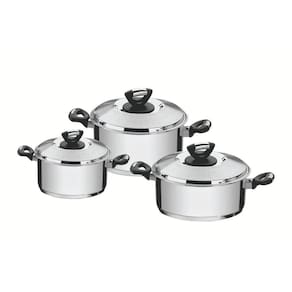 Composição - 1 Caçarola funda 16 cm 1,8 L;1 Caçarola funda 20 cm 3,6 L;1 Caçarola rasa 20 cm 2,9 L.