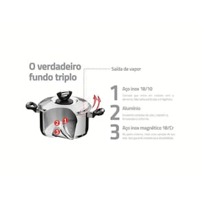 Mais Informações - Mais saudável: por ser feita de aço inoxidável, a panela Tramontina não libera nenhum tipo de resíduo nas suas receitas.Fácil de usar: uma panela prática para todas as suas receitas e que faz bonito em qualquer tipo de fogão: gás, elétrico, vitrocerâmico e indução. Ainda possui tampa com saída de vapor e encaixe perfeito.Mais durável: o inox Tramontina é uma matéria-prima nobre, resistente e que vai fazer bonito por muito mais tempo na cozinha.Economiza tempo e energia: o segredo está no fundo triplo (aço inox + alumínio + aço inox), que distribui o calor uniformemente, proporcionando um cozimento mais rápido. Por isso, você pode manter o fogo baixo durante todo o preparo e, assim, poupar energia. Além disso, a panela toda em aço inox pode ir ao forno para gratinar ou finalizar pratos, na temperatura máxima de 260C.Fácil de limpar: deixar sua panela brilhando é simples, você só precisa de água, sabão e uma esponja macia. Se preferir, é só colocar na máquina de lavar.