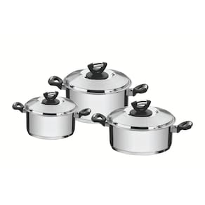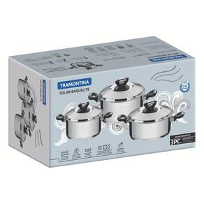 Tenha momentos incríveis na cozinha com o Jogo de Panelas Tramontina Solar Baquelite em Aço Inox com Fundo Triplo e Cabos e Alças de Baquelite 3 Peças. As peças produzidas totalmente em aço inox com tecnologia de fundo triplo (aço inox + alumínio + aço inox), distribuem o calor uniformemente, proporcionando um cozimento mais rápido e deixando os alimentos aquecidos por mais tempo. As peças possuem cabos e pegadores em baquelite, um isolante térmico que protege suas mãos do calor. Possuem design moderno com acabamento em alto brilho, proporcionando uma aparência cheia de estilo para sua cozinha. Aliando praticidade com segurança, o conjunto possui protetor de chamas, que evitam queimaduras quando a chama não estiver centralizada no fundo da panela e suas tampas possuem saída de vapor e encaixe perfeito. Pensada para facilitar a limpeza, podem ser lavadas diariamente na máquina de lavar louças. Garanta já o seu e dê um toque de elegância em sua cozinha!