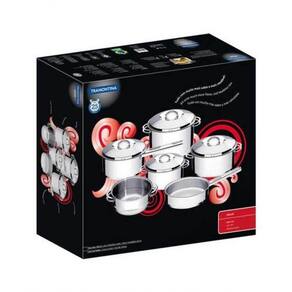Antes do uso: Antes de utilizar o , remova as eventuais etiquetas e lave-o com água quente e de uso: Use uma fonte de calor brando para evitar que o alimento grude no fundo da caçarola, não sendo necessário o fogo alto. Quando a caçarola for utilizada no fogão a gás, a chama não deve ultrapassar a base da caç caso de uso de chapa elétrica, a chapa deverá ter diâmetro igual ou inferior ao da caçarola. Sempre dissolva o sal em água fervendo ou com os alimentos, mexendo os ingredientes no início do cozimento. Não aqueça o alimento colocando uma caçarola do mesmo diâmetro sobre a outra. Esse procedimento é perigoso, pois cria vácuo e impossibilita a retirada do mesmo. Alguns alimentos que possuem amido, como massa e arroz, poderão deixar manchas na parte interna da caçarola durante o cozimento. Para remover facilmente as manchas, passe um pano umedecido com suco de limão ou vinagre, ou utilize a pasta para polir e remover manchas Tramontina (94537000). Depois da lavagem, sempre que possível, enxágue a caçarola com água quente e seque-a imediatamente, pois o cloro e as substâncias contidas na água podem deixar manchas na caçarola. Não deixe a caçarola vazia sobre uma fonte de calor. Deixe as caçarolas quentes somente em superfícies resistentes ao calor. Os cabos de inox aquecem durante o cozimento, por isso use luvas durante o ácil de limpar: deixar sua panela brilhando é simples, você só precisa de água, sabão e uma esponja macia. Se preferir, é só colocar na máquina de lavar.