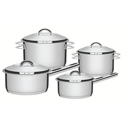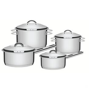Jogo de Panelas Tramontina Solar em Aço Inox com Fundo Triplo 4 Peças O design clean da linha Solar foi criado para tornar mais simples as tarefas de forno e fogão. O Jogo de Panelas Tramontina Solar em Aço Inox com Fundo Triplo 4 Peças possui um design moderno, com acabamento em alto brilho. O fundo triplo (aço inox + alumínio + aço inox) distribui o calor uniformemente, proporcionando um cozimento mais rápido e uniforme, economizando energia e deixando os alimentos aquecidos por mais tempo. Desenho limpo e sem cantos torna a limpeza mais fácil. Sua tampa tem saída de vapor e encaixe perfeito. Descrição Técnica Mais saudável: por ser feita de aço inoxidável, a panela Tramontina não libera nenhum tipo de resíduo nas suas receitas. Fácil de usar: uma panela prática para todas as suas receitas e que faz bonito em qualquer tipo de fogão: gás, elétrico, vitrocerâmico e indução. Ainda possui tampa com saída de vapor e encaixe perfeito. Mais durável: o inox Tramontina é uma matéria-prima nobre, resistente e que vai fazer bonito por muito mais tempo na cozinha. Economiza tempo e energia: o segredo está no fundo triplo (aço inox + alumínio + aço inox), que distribui o calor uniformemente, proporcionando um cozimento mais rápido. Por isso, você pode manter o fogo baixo durante todo o preparo e, assim, poupar energia. Além disso, a panela toda em aço inox pode ir ao forno para gratinar ou finalizar pratos, na temperatura máxima de 260°C. Fácil de limpar: deixar sua panela brilhando é simples, você só precisa de água, sabão e uma esponja macia. Se preferir, é só colocar na máquina de lavar.