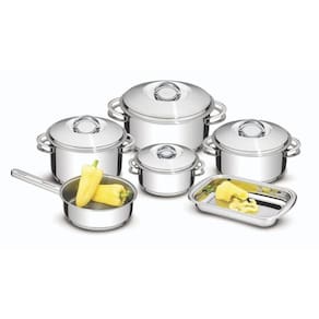 Tramontina é sinônimo de durabilidade e praticidade. O Jogo de Panelas Tramontina em Aço Inox Fundo Triplo 6 Peças da linha Solar une elegância com segurança. Totalmente feita em inox, não solta resíduos nos alimentos e seu fundo triplo (aço inox + alumínio + aço inox) distribui o calor uniformemente, proporcionando um cozimento mais rápido, economizando energia e deixando os alimentos aquecidos por mais tempo. Fáceis de limpar e altamente duráveis, as panelas podem ser lavadas diariamente e ser utilizadas em todos os fogões. O Jogo de Panelas Tramontina em Aço Inox Fundo Triplo vai renovar e dar beleza a sua cozinha!