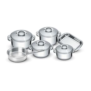 Composição - 01 Assadeira Cosmos 29,5 x 19,2 cm01 Frigideira sem tampa 20 cm 2,14 Litros01 Caçarola rasa 16 cm 1,40 Litros01 Caçarola rasa 20 cm 2,9 Litros01 Caçarola rasa 24 cm 4,7 Litros01 Caçarola funda 20 cm 3,60 Litros