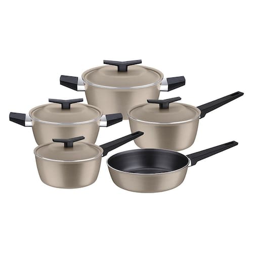 - 1 Caçarola Ø 20cm 1 Caçarola Ø 24cm 1 Frigideira Funda Ø 24cm 1 Panela Ø 18cm 1 Panela Ø 20cm