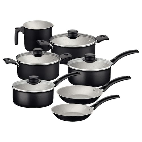 Quem não abre mão de alta qualidade na cozinha e deseja praticidade durante o preparo das suas refeições, precisa contar com o jogo de panelas Tramontina Turim em alumínio com revestimento interno e externo em antiaderente Starflon Max preto 07 peças. Composto por panelas, caçarolas, frigideiras e fervedor, ele é um jogo desenvolvido em alumínio com espessura especial e revestimento em antiaderente Starflon. Devido a essas características, as peças cozinham os alimentos de maneira rápida e uniforme, sem que eles grudem em sua superfície; garantindo também maior resistência, durabilidade e facilidade na limpeza. As panelas e caçarolas vem com tampas de vidro temperado com bordas de aço inox e pegadores de nylon e todos os itens contam com cabos ou alças em baquelite antitérmico, material que não aquece e proporciona um manuseio confortável e seguro. Além de todas essas características, as peças do jogo podem ser levadas à máquina de lavar louças e utilizadas em fogões a gás, elétricos e vitrocerâmicos - resistência elétrica. Escolha Tramontina e transforme seu dia a dia na cozinha!