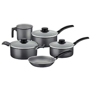 O Jogo de Panelas Tramontina Turim oferece praticidade e qualidade para suas refeições. Composto por cinco peças em alumínio, garantem um cozimento rápido e uniforme dos alimentos. Seu revestimento interno e externo em antiaderente Starflon Max evita que os alimentos grudem, facilitando a limpeza e garantindo durabilidade. As tampas de vidro temperado com bordas em aço inox auxiliam no preparo das receitas.