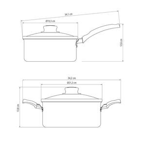 conteúdo da embalagem: - 1 caçarola turim com tampa 20 cm - 2,8 l ptc2 - 20261620 - 1 panela turim com tampa 18 cm - 2 l ptc4 - 20262618